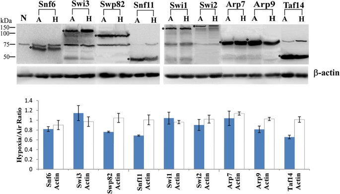 实验目的:明确SWI/SNF蛋白定位变化与低氧诱导基因表达的功能关联;方法细节:整合过往低氧转录组数据与SWI/SNF靶基因数据库,用R语言分析低氧调控基因中SWI/SNF靶基因的比例,并计算统计学显著性;结果解读:研究显示,野生型HAP1酵母中,Swi2、Swi3的靶基因分别有95、112个受低氧调控,Δhap1酵母中也有相似数量的靶基因受低氧调控(P<0.05,文献未明确样本量);且SWI/SNF蛋白定位变化在6-12小时内完成,远早于转录组响应的5-6代细胞周期,提示SWI/SNF定位调控是低氧基因表达变化的上游启动机制;产品关联:文献未提及具体实验产品,领域常规使用R语言、转录组分析数据库等工具。