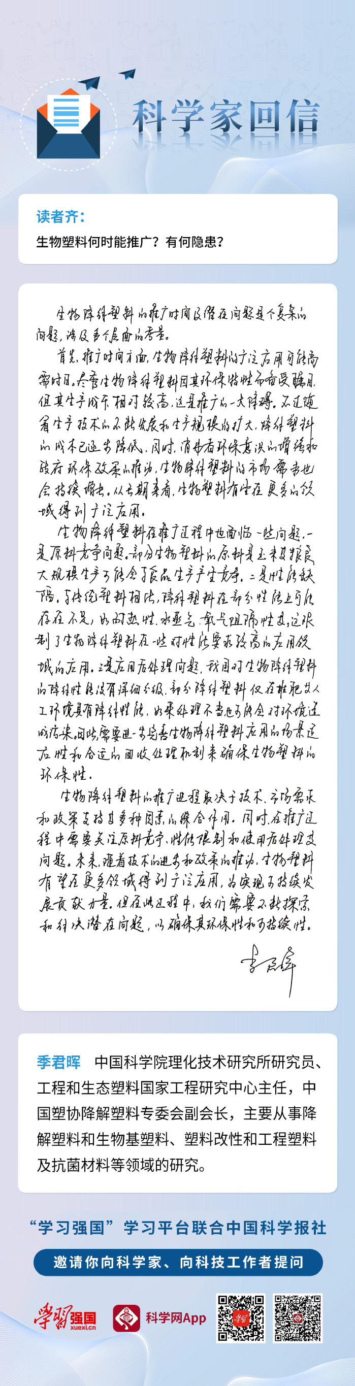 季君晖:生物降解塑料的推广时间及潜在问题是个复杂的问题,涉及多个层面的考量。