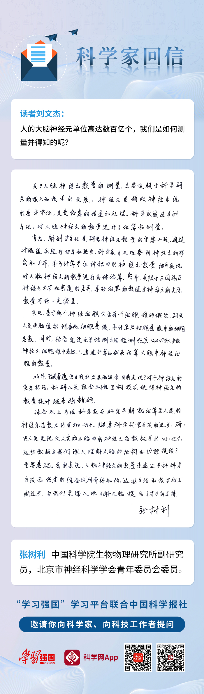 读者刘文杰:人的大脑神经元单位高达数百亿个,我们是如何测量并得知的呢?