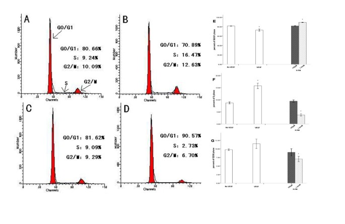 方法细节:将饥饿后的HUVEC与H-RN(150μM、1.5mM)或VEGF处理24h,用70%乙醇固定细胞,PI染色后通过流式细胞术分析细胞周期分布,每组实验重复3次。