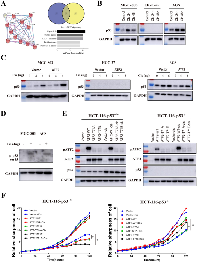 作者对领域内现有研究的分类维度主要包括ATF2的细胞/组织特异性功能、亚细胞定位与功能的关联、p53在化疗应答中的核心作用三个层面。现有研究显示,ATF2在黑色素瘤、非小细胞肺癌中发挥癌基因功能,促进肿瘤增殖与转移;而在非黑色素瘤皮肤癌、乳腺癌中则作为抑癌基因,抑制肿瘤发生发展,其亚细胞定位是功能调控的关键因素,核定位的ATF2通常与癌基因功能相关,线粒体定位的ATF2则参与凋亡调控。同时,p53作为经典肿瘤抑制因子,在超过50%的人类癌症中存在突变,突变型p53不仅丧失抑癌功能,还会获得促癌特性,与化疗耐药密切相关,但ATF2与p53在胃癌化疗应答中的相互作用机制尚未被阐明。通过对比现有研究的未解决问题,本研究的创新价值在于首次揭示ATF2与p53的直接相互作用,明确ATF2在胃癌顺铂应答中的双面功能完全依赖于p53的功能状态,为胃癌化疗敏感性的精准预测提供了新的联合生物标志物。