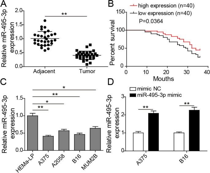 3.1 黑色素瘤中miR-495-3p的表达及功能验证