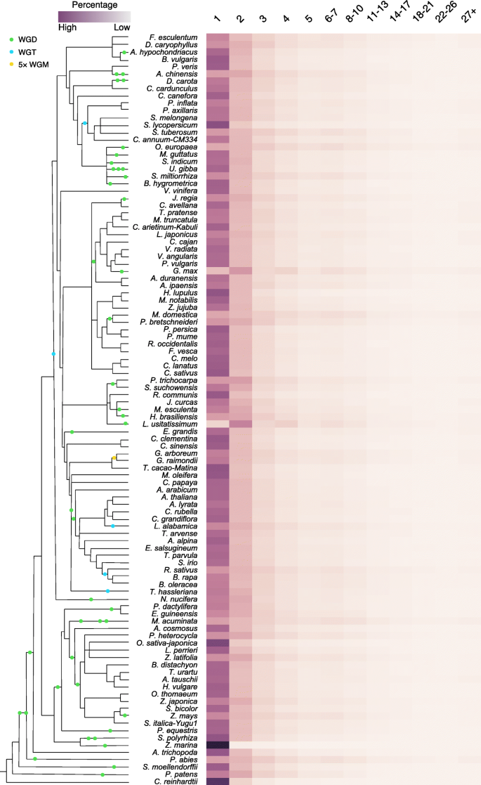 实验目的:建立标准化的生物信息学流程,系统识别141个植物基因组中的五种基因复制模式。