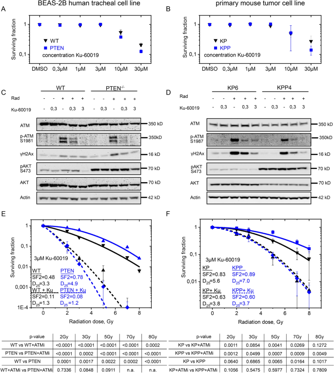 实验目的:验证PTEN缺失NSCLC对ATM通路的依赖性,探索ATM抑制剂联合放疗的治疗效果。