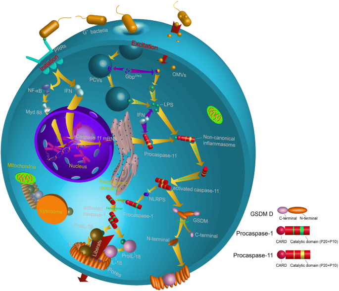 实验目的:详细解析Caspase-11介导的非经典细胞焦亡通路的两个关键阶段,明确胞内LPS的识别与Caspase-11的激活机制。