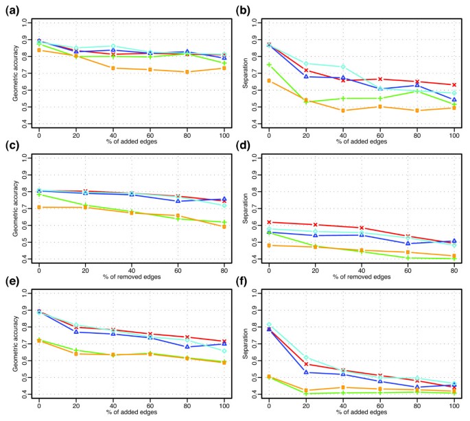 实验目的是基于随机图模型过滤蛋白质相互作用数据中的假阳性,提升模块识别的准确性。方法细节上,计算每对互作蛋白的共同伙伴数的统计显著性(P值),采用超几何分布计算随机情况下出现该共同伙伴数的概率,移除P值>0.01的边,并迭代更新受影响边的P值,直至所有边的P值≤0.01。结果解读显示,酵母数据集经过滤后,假阳性相互作用比例显著降低,模块与已知MIPS复合物的重叠度提升,GO功能富集的显著性增强;过滤步骤在所有实验中均提升了模块识别的质量,验证了该方法的有效性。