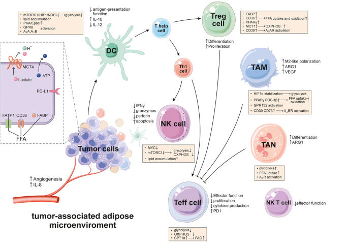 方法细节:综述整合了体外细胞共培养、动物模型(肥胖小鼠模型、肿瘤异种移植模型)及临床样本分析的研究数据,通过细胞功能实验、细胞因子检测、代谢组学分析等手段,解析CAAs与固有免疫细胞的相互作用。
