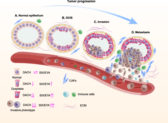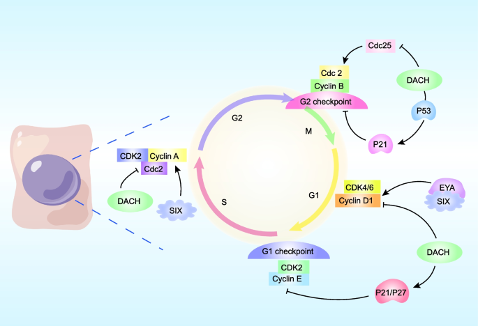 领域共识:发育调控网络的异常激活是肿瘤发生的核心机制之一,正常发育过程中的细胞增殖、分化、稳态维持由多种细胞内分子网络协同调控,当这些网络功能失调时,会打破生理平衡引发疾病。视网膜决定基因网络(RDGN)最初在果蝇眼发育研究中被发现,随后的研究证实其在哺乳动物器官发育(如肾脏、心脏、神经系统)中发挥关键调控作用,同时与肿瘤的发生、发展密切相关。当前研究热点聚焦于RDGN核心成员(DACH、SIX、EYA)在不同肿瘤中的功能差异、与肿瘤干细胞特性及治疗耐药性的关联,以及作为潜在治疗靶点的转化潜力。但领域内仍存在未解决的核心问题:RDGN成员在不同肿瘤中呈现的双向调控机制(如DACH1在部分肿瘤中为促癌因子)尚未明确;RDGN与其他信号通路(如TGF-β、Wnt)的复杂交互网络解析不充分;其在慢性肾脏病、冠心病等慢性病中的具体调控机制及临床应用价值仍需深入探索。