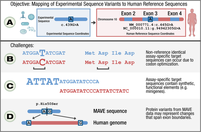 本文的背景部分系统梳理了领域内的研究现状,作者按“临床测序挑战-功能评估技术-数据资源瓶颈”的维度分类评述现有研究。现有研究已证实多重变异效应分析技术在变异功能评估中的核心优势,能产生大规模、系统性的变异功能数据,MaveDB的建立实现了这些数据的集中存储与共享,为领域提供了宝贵的功能证据资源。但现有研究存在明显局限性:多重变异效应分析数据多基于实验设计的特定序列,与人类参考基因组缺乏标准化映射,导致数据无法直接对接临床常用的基因组学分析平台,难以与临床变异数据、蛋白结构数据等整合使用;同时,此前缺乏针对大规模多重变异效应分析数据的自动化映射流程,无法满足领域对这类数据规模化应用的需求。本文的创新价值在于,首次针对MaveDB中所有人类相关的多重变异效应分析数据集开展标准化映射,解决了实验序列与参考基因组的对接难题,并通过多平台整合实现了多重变异效应分析数据的广泛应用,填补了多重变异效应分析数据从实验存储到临床实用的关键空白。