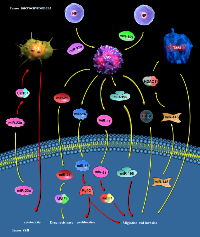 本文以微小RNA在肿瘤神经周围浸润中的功能分类为核心逻辑,将现有研究分为促进PNI的微小RNA、抑制PNI的微小RNA及具有双重作用的微小RNA家族三大类,同时结合微小RNA与PNI相关分子(神经营养因子、基质金属蛋白酶、趋化因子)及微环境细胞的相互作用,全面梳理了领域内的研究进展。