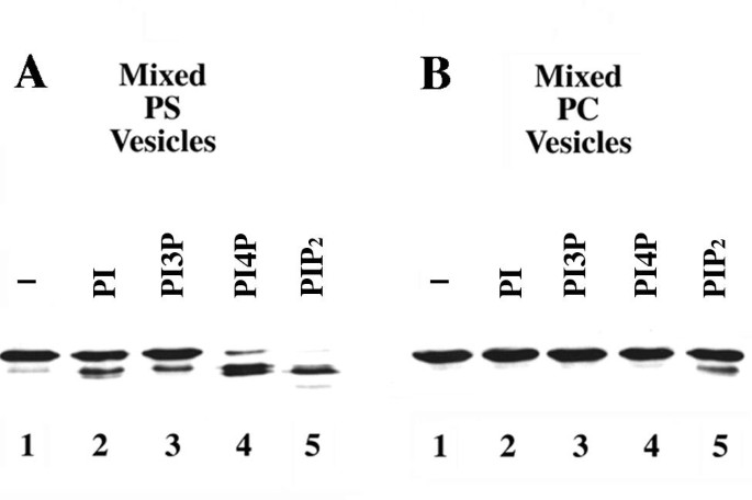 本环节的实验目的是验证Boi1 PH域是否具备结合酸性磷脂的能力,并明确不同磷脂的结合差异。实验方法上,研究人员选择Boi1-PH片段而非全长Boi1进行实验,因全长Boi1几乎不溶,无法开展体外结合分析。采用蛋白水解实验与囊泡共沉淀实验两种技术:蛋白水解实验中,将含Boi1-PH的酵母提取物与PS或PC囊泡(添加不同类型的磷脂酰肌醇类磷脂)共孵育,加入2mM氯化钙诱导蛋白水解,通过免疫印迹(Western Blot)检测Boi1-PH的降解情况;囊泡共沉淀实验中,将Boi1-PH与PS或PS+PIP₂囊泡共孵育,在不同浓度氯化钾(0、50、100、200mM)条件下超速离心,分离上清与沉淀组分,通过免疫印迹检测Boi1-PH在各组分中的分布。