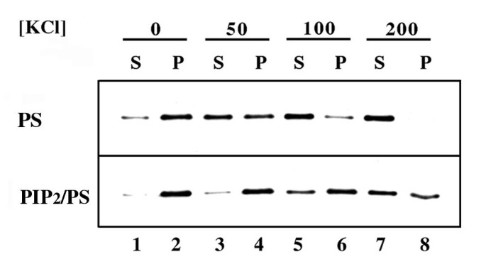 实验结果显示,蛋白水解实验中,PIP₂/PS混合囊泡可显著诱导Boi1-PH降解,PI4P/PS囊泡有一定诱导作用,而PS单独囊泡无明显诱导效果;若以中性磷脂PC为囊泡主体,仅PIP₂能微弱诱导Boi1-PH降解(对应图2)。囊泡共沉淀实验显示,Boi1-PH可与PS囊泡共沉淀,添加PIP₂后共沉淀的Boi1-PH比例显著升高,且在高浓度氯化钾条件下仍能保持结合(对应图3)。上述结果表明,Boi1-PH可结合PS与PIP₂,且对PIP₂的亲和力更高,PS可促进Boi1-PH与PIP₂的结合。