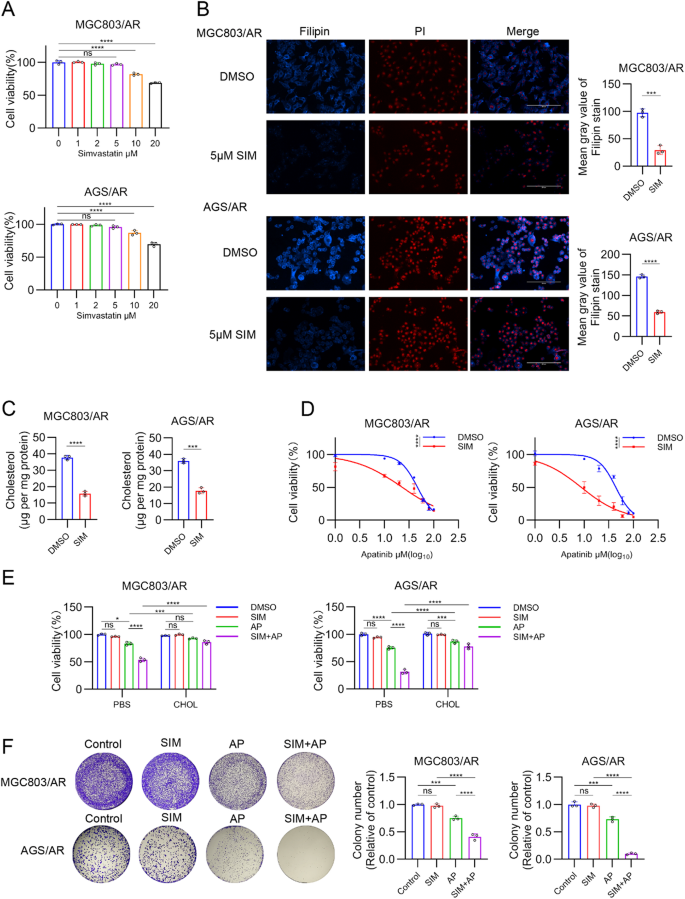 实验目的:验证细胞内胆固醇水平对阿帕替尼耐药的调控作用,明确胆固醇的特异性效应。