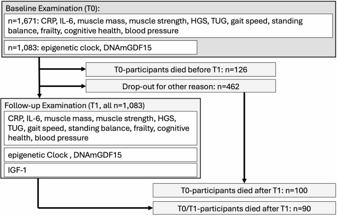 方法细节:采用柏林衰老研究II(BASE-II)队列,基线纳入2009-2014年1671名60-80岁的社区老年参与者,所有参与者均签署书面知情同意书。基线评估完成后平均随访7.4±1.5年(范围3.9-10.4年,n=1671),随访期内通过柏林市人口登记系统收集死亡信息,由4名跨学科专家对死亡证明进行复核,明确死因编码。研究流程符合赫尔辛基宣言,经柏林夏里特医科大学伦理委员会批准。