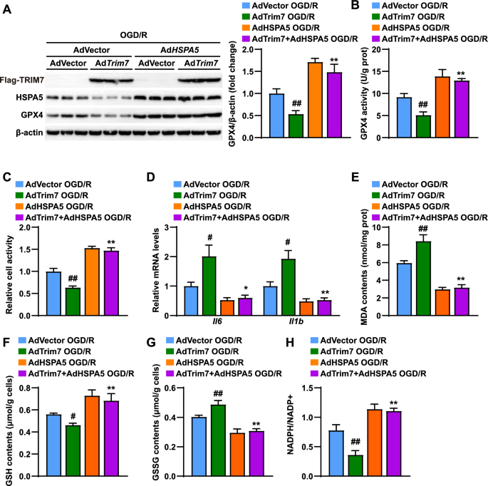3.6 热休克蛋白家族A成员5回补实验验证三结构域蛋白7-热休克蛋白家族A成员5-谷胱甘肽过氧化物酶4调控轴的功能