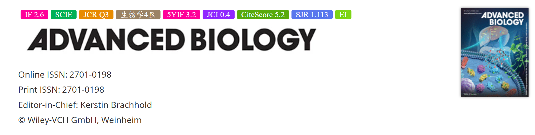 点击查看:Adv Biol最新影响因子与分区
