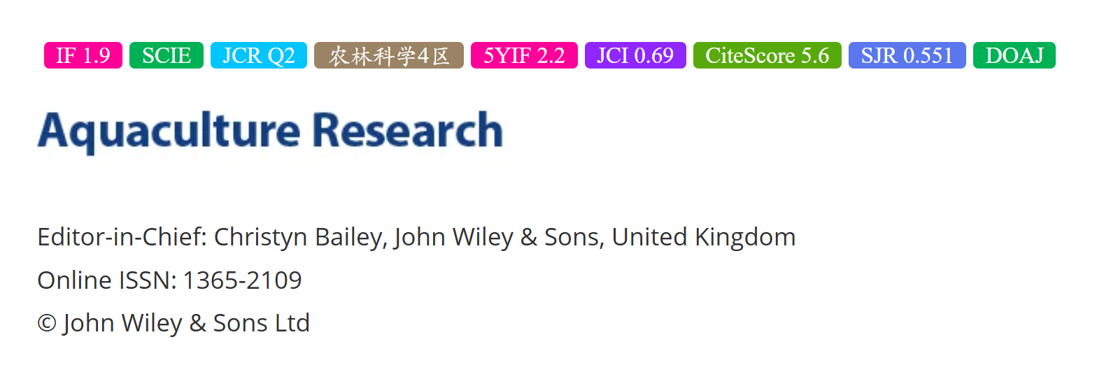 核心总结:《Aquaculture Research》作为水产养殖领域应用基础研究的标杆期刊(JCR Q1/中科院2区),适合投稿具有“实验室验证+养殖场景应用”双重数据的研究,尤其在可持续养殖技术与水产生物技术交叉领域具有高影响力。 实用工具包: